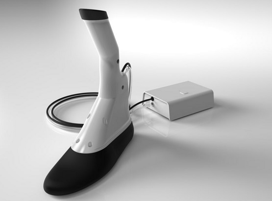 Устройство для измерения обуви представляет собой прибор, состоящий из двух блоков: измерительный и компрессорный блоки. Измерительный блок представляет собой устройство, которое устанавливается в ботинок. Основные части это пластиковая рукоять, которая установлена на основании, и резиновая камера. Резиновая камера используется для заполнения внутренней полости ботинка, расправляет его и продавливает материал имитируя человеческую ногу. Это позволяет максимально точно измерить внутреннюю полость, так как обувь находится в максимально расправленном состоянии. Второй блок — компрессорный, соединен с измерительным воздушным шлангом и кабелем передачи данных. Компрессорный блок подключается к сети питания и ПК. На компрессорном блоке присутствует всего одна кнопка, последовательность действий максимально проста, ошибка измерения сведена к минимуму. Устройство необходимо вставить в ботинок, не нужно никаких дополнительных установок внутри, при нажатии на кнопку резиновая камера измерительного блока надувается до определенного давления, происходит замер, на ПК вводится SKU, далее нажимаем клавишу «сохранить», устройство сдувается, извлекается и уставляется в следующий ботинок. В данный момент, мы на целены на измерение определённого типа обуви — это закрытая обувь на плоском ходу, женская и мужская, берём самые ходовые размеры на данный момент 38-44, в дальнейшем этот диапазон будет расширен по результатам испытаний. Внутри ботинка мы контролируем размеры в 22 точках и с помощью алгоритмов рассчитываем обхваты ноги.